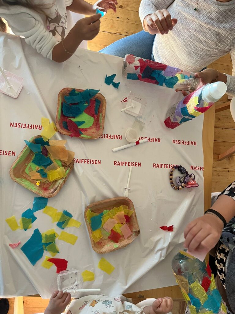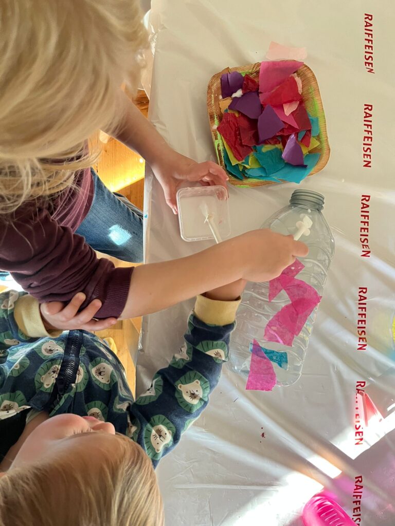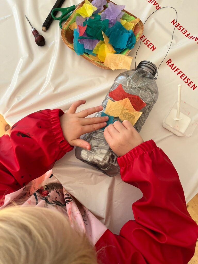 Am Mittwoch 5. November waren die Kinder im Bastelfieber. Denn am 7. November findet der traditionelle Laternenumzug in Thörishaus statt. Bei uns in den Räumlichkeiten der Spielgruppe konnten die Kinder farbige Laternen aus Petflaschen zaubern. Wir freuen uns schon, diese schönen Werke heute am Umzug leuchten zu sehen!
